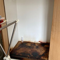 アパートのクローゼットで孤独死が発生し体液や臭いがひどく、できる限り早く清掃と消臭をお願いしたいとのことでした。