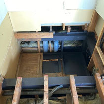 クローゼットの床を剥がしていってみますと、体液がベニヤ板を浸透してネタの柱にべったりと残っている状態でした。